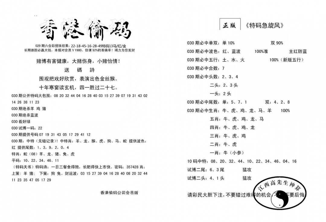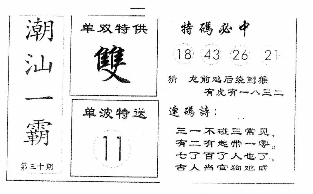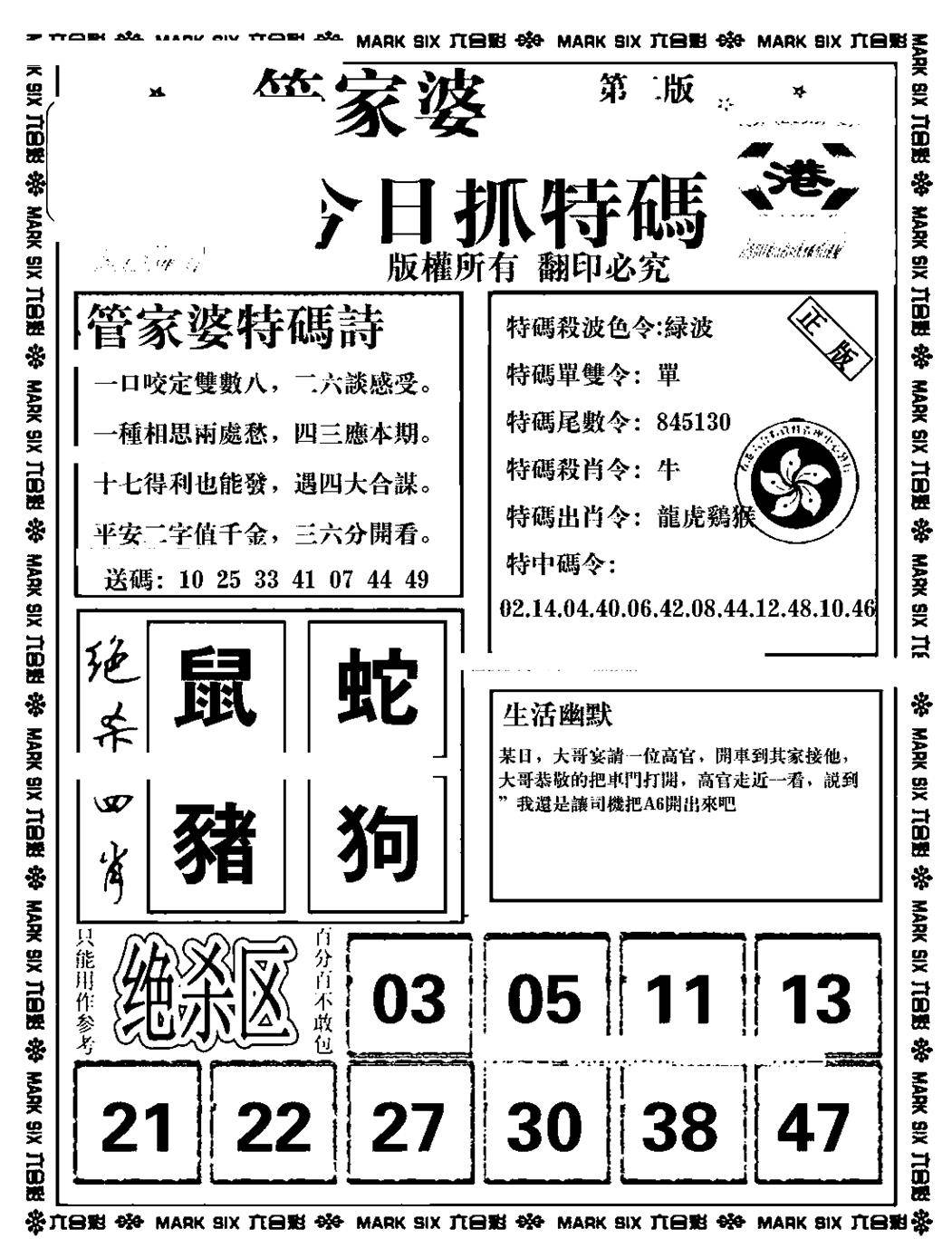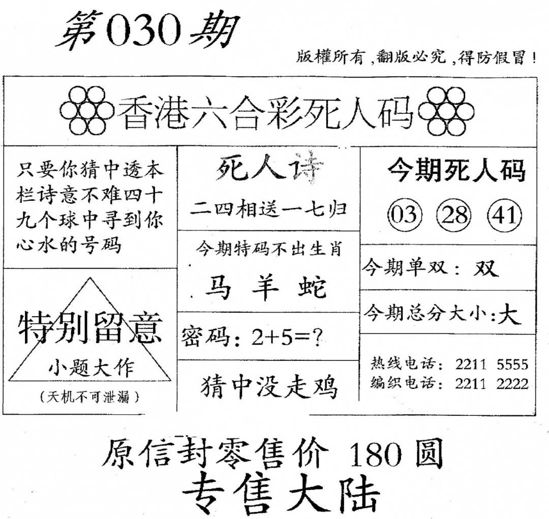 今日抓特码A(正版)