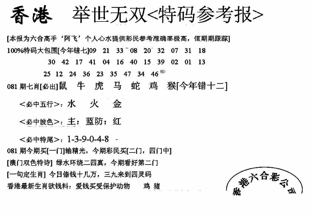 彩卷后庄A(保证香港版)