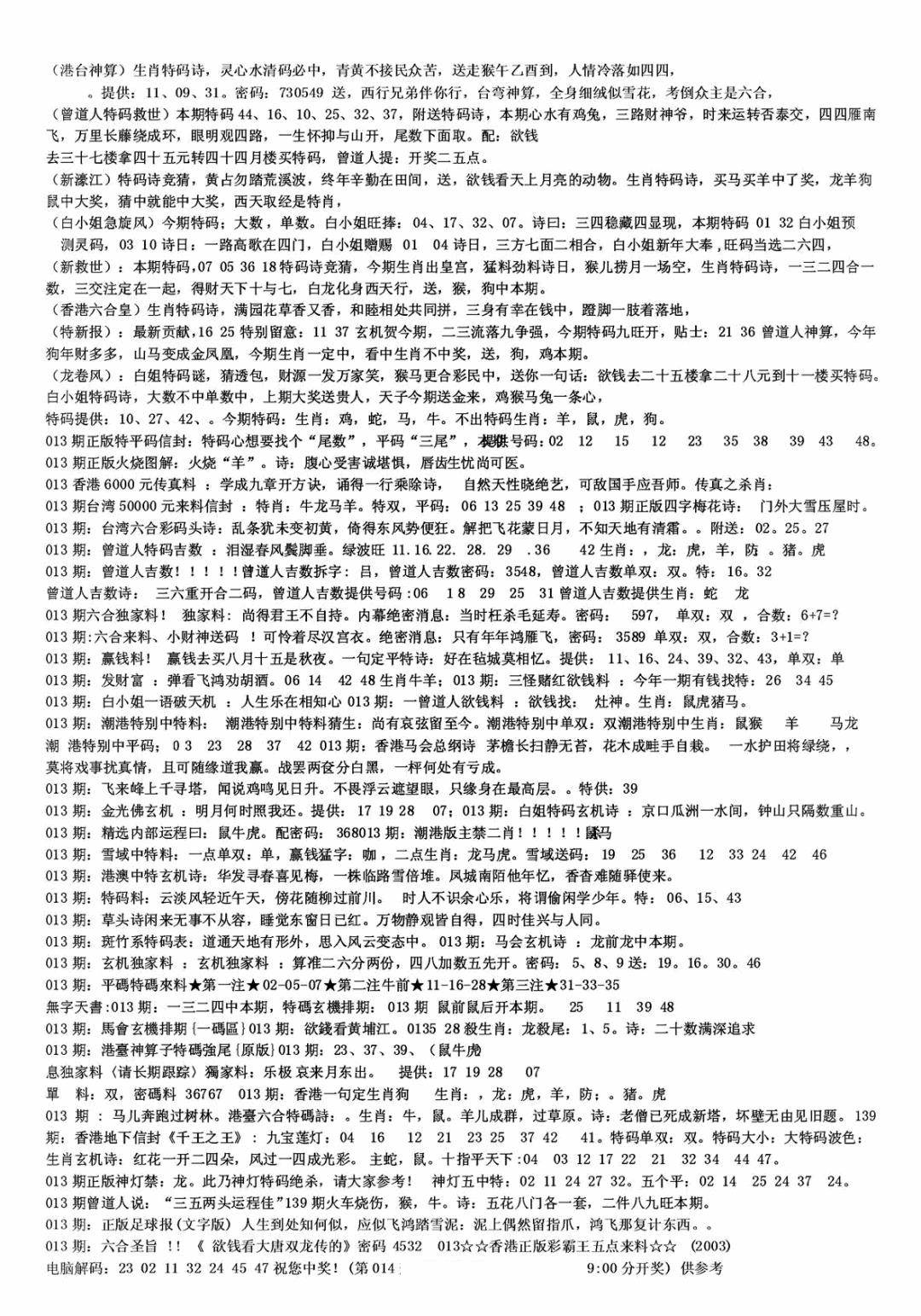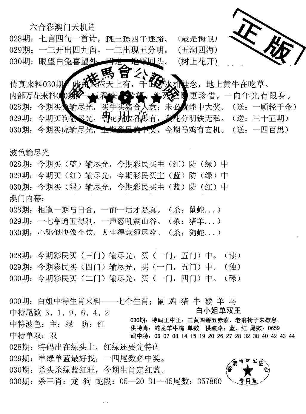 新版内部玄机A