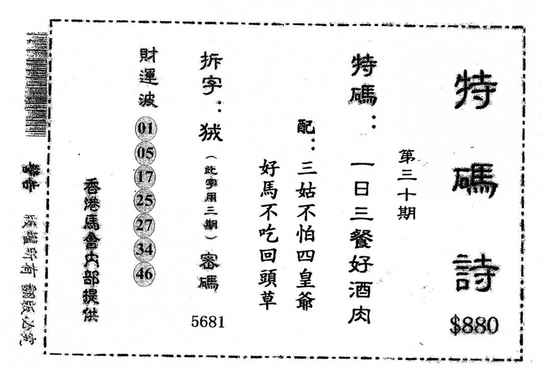 老版880特码诗