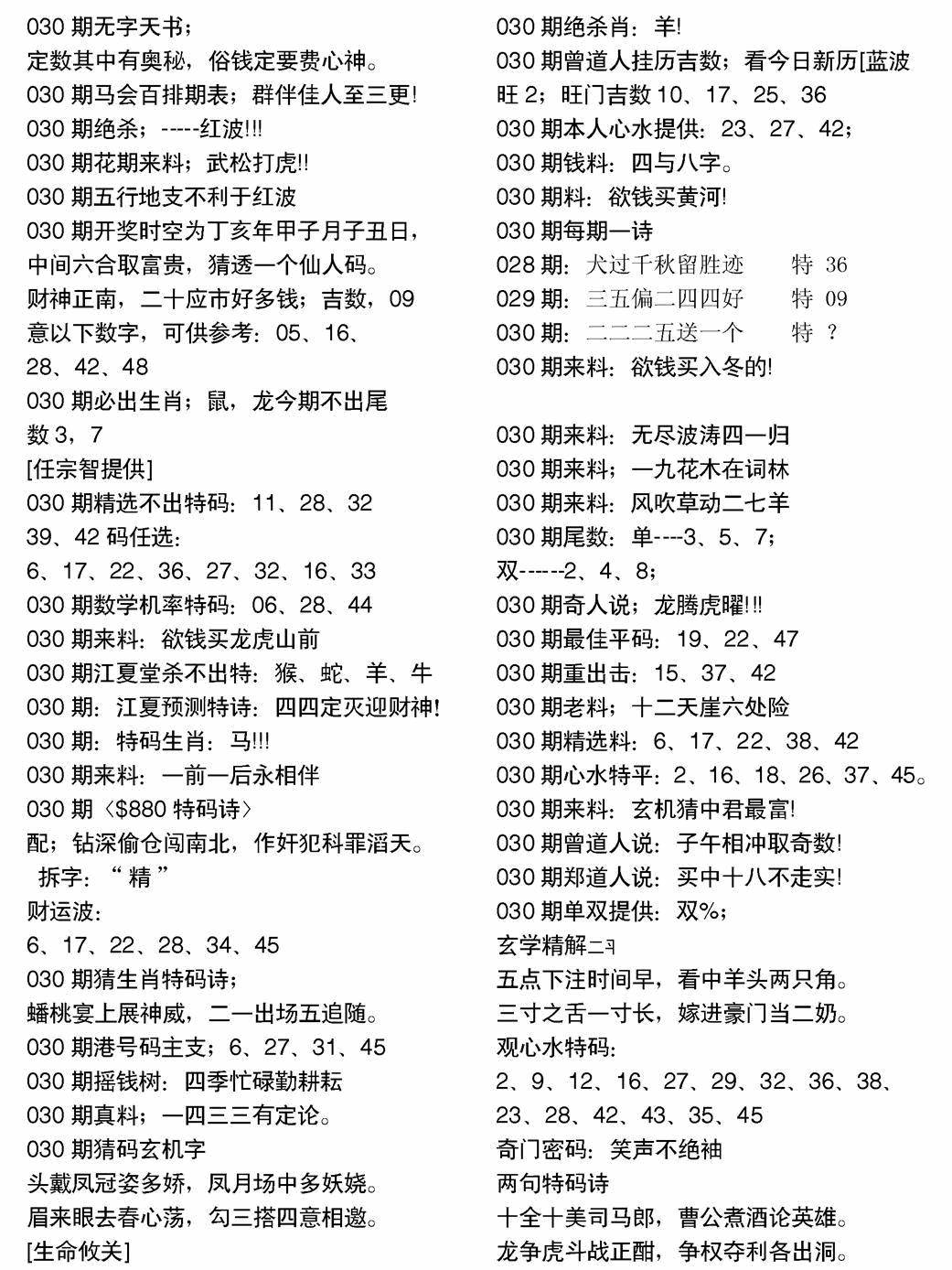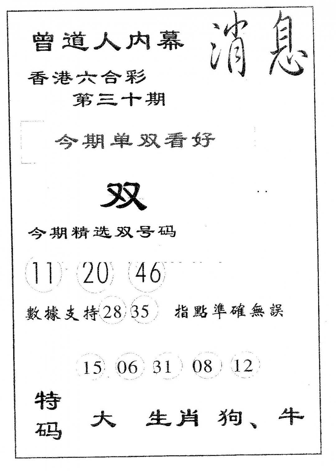 曾道人权威消息A