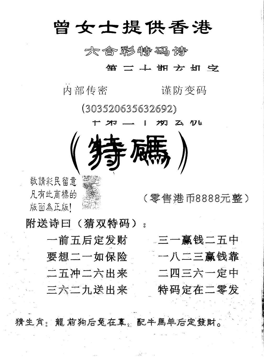 曾女士特码诗