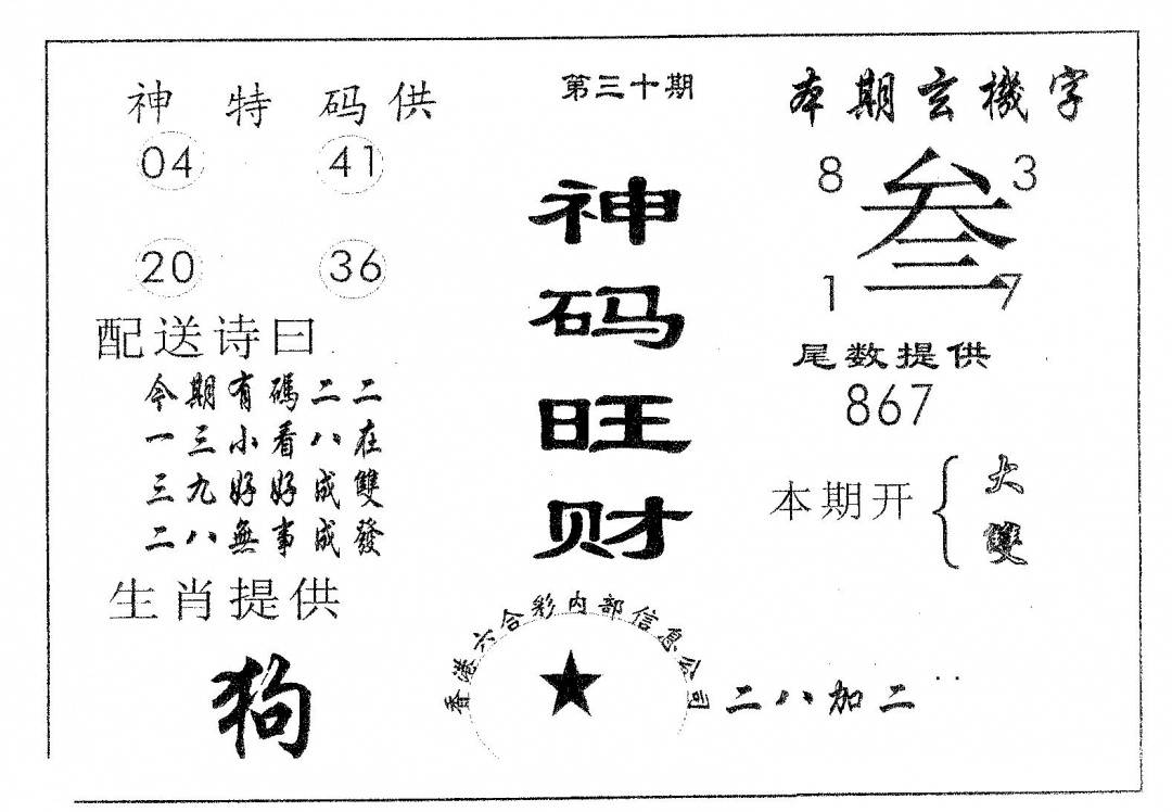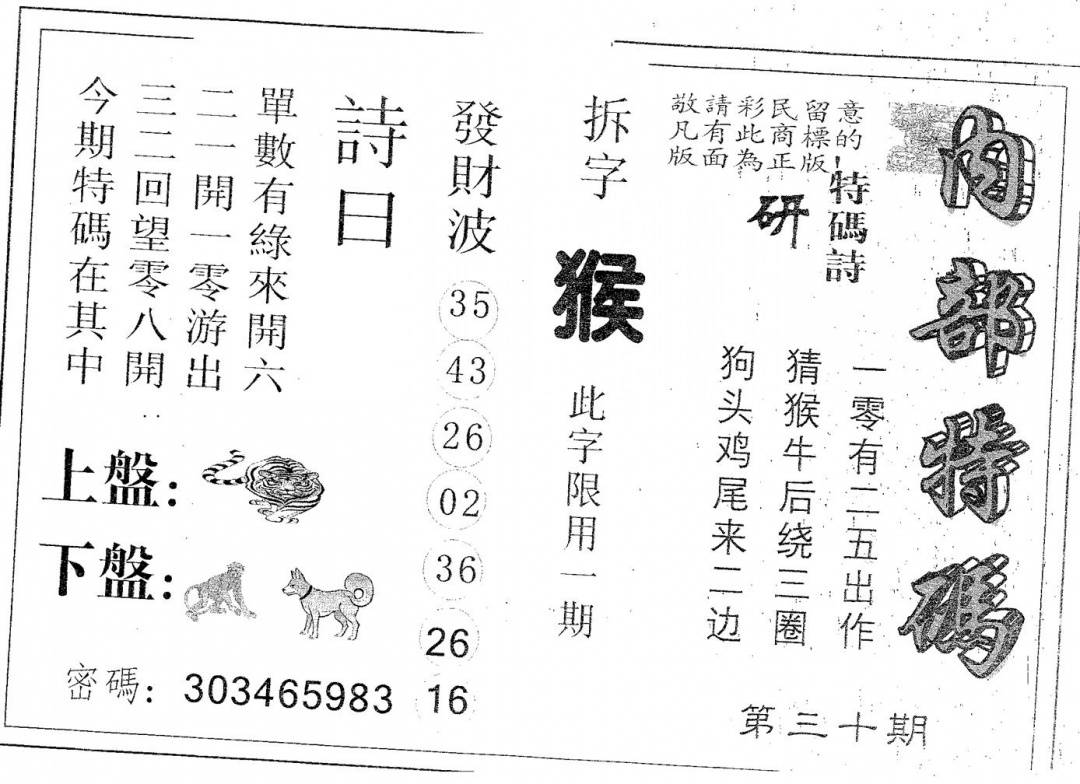 另版心水特码(早图)