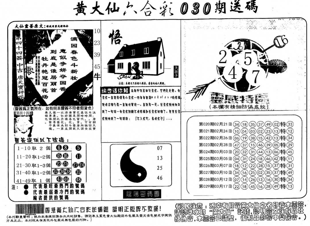 另版香港黄大仙A