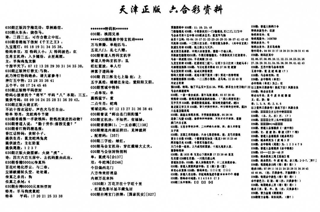 天津正版六合彩资料