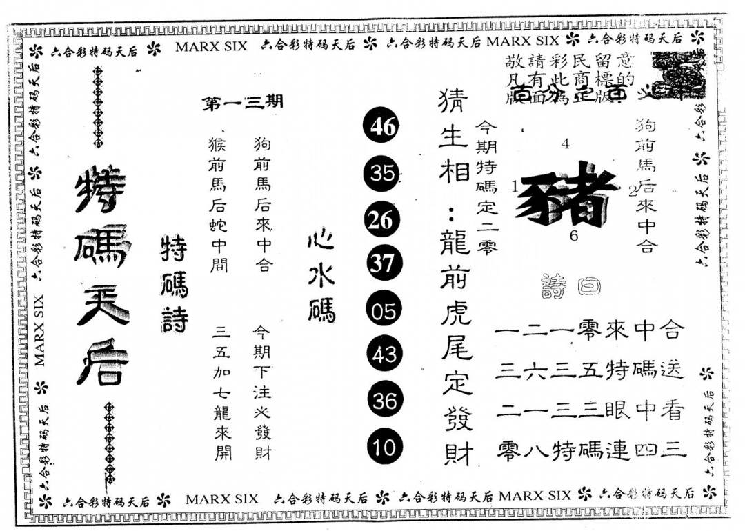 另版特码天后