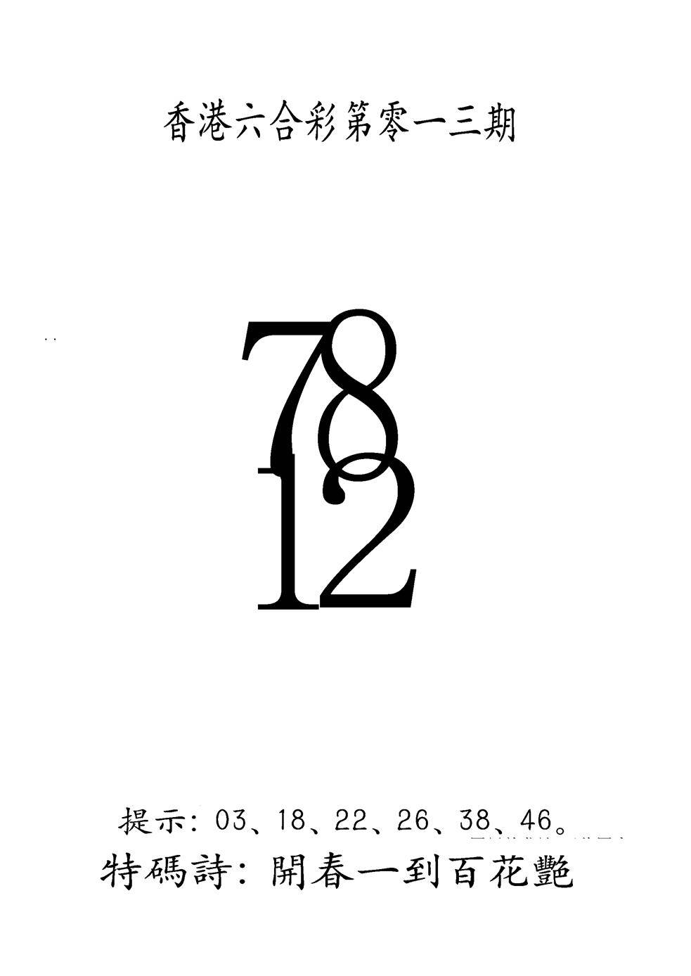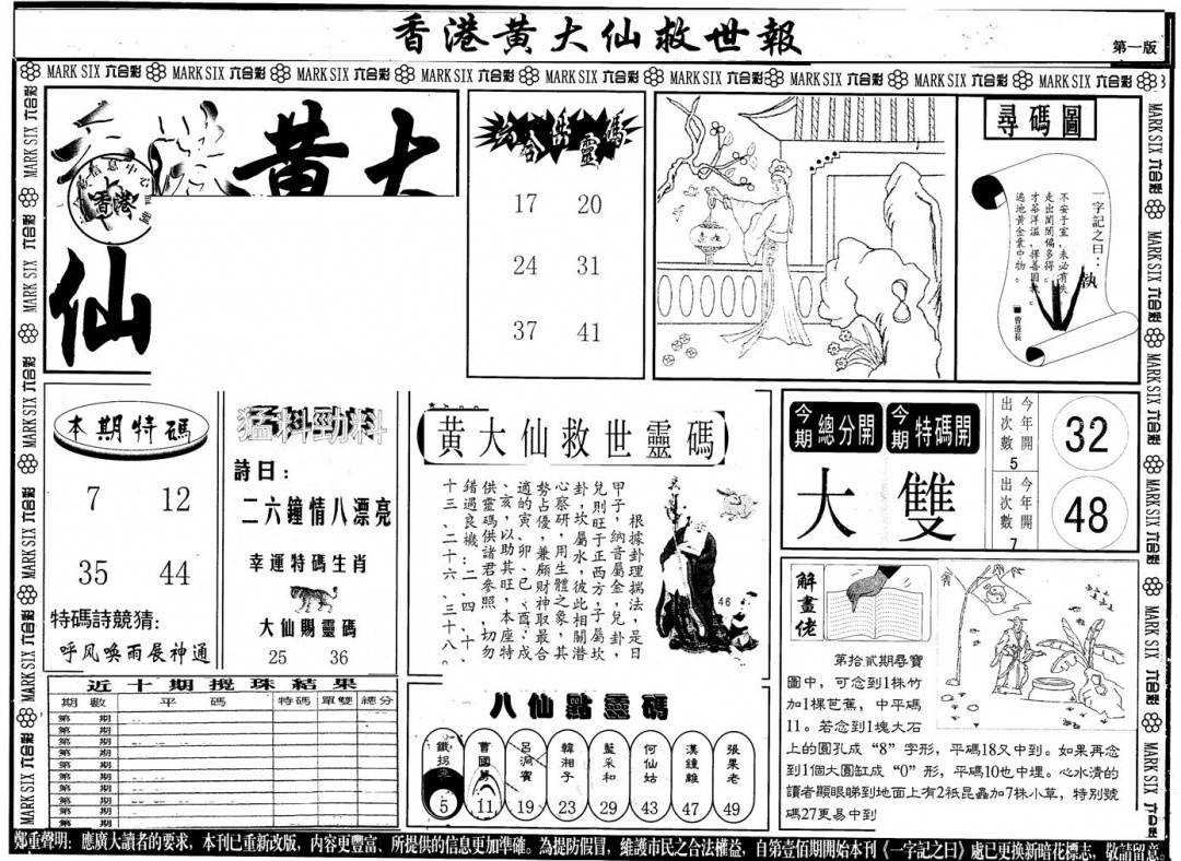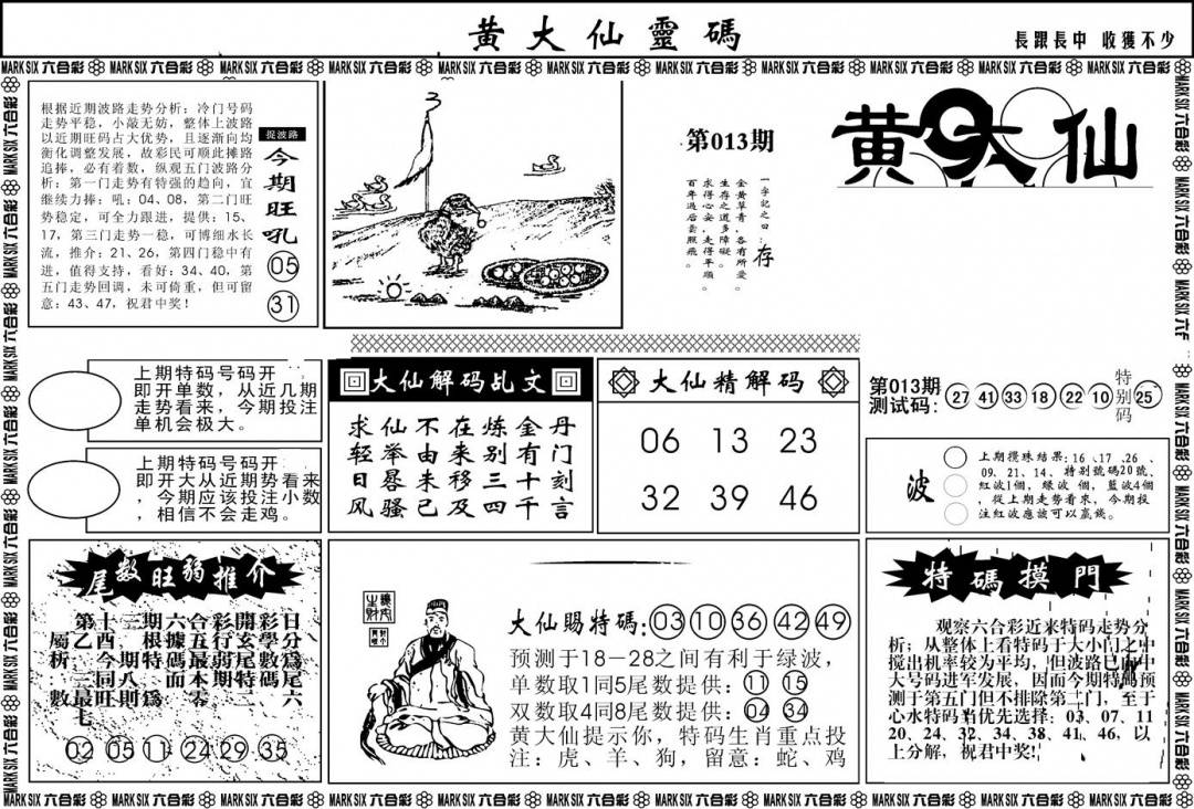 另版黄大仙灵码A