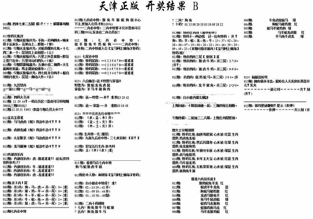 天津正版开奖结果B